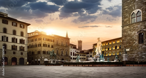 © Givaga, Fototapeta premium Wschód słońca na placu we Florencji