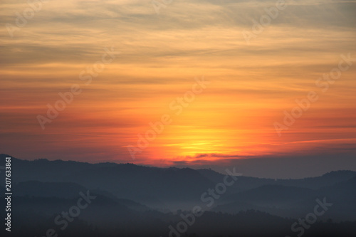 © saobaka, Fototapeta premium Wschód słońca na szczycie góry