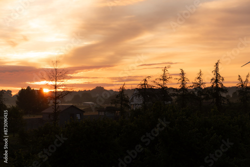 © Mateusz, Obraz premium Wschód słońca nad domami