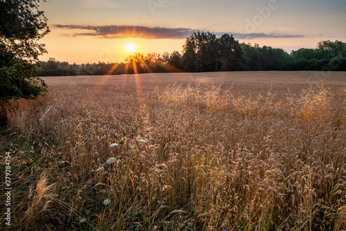Obraz premium wschód słońca nad polami zboża