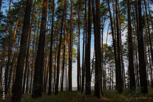Obraz premium wschód słońca w lesie sosnowym