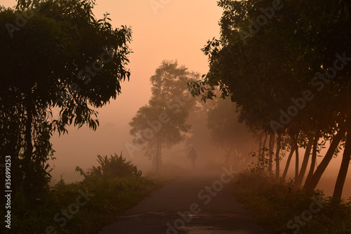 © Photoay, Fototapeta premium Wschód słońca we mgle