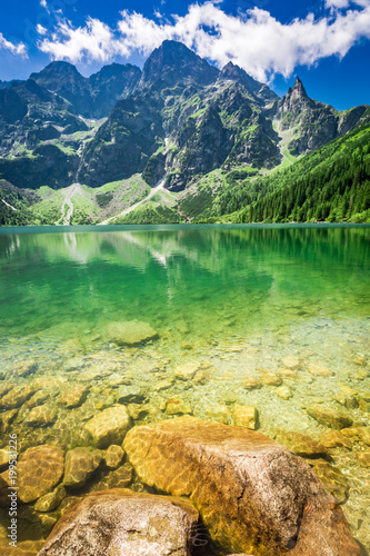 Obraz premium Wspaniałe błękitne jezioro w górach w słoneczny dzień, Polska