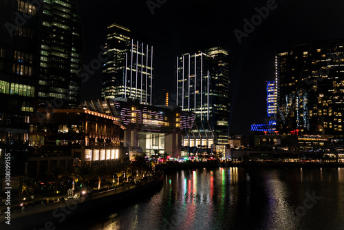 Naklejka premium Wspaniały widok na drapacze chmur w nocy - centrum handlowe Al Galleria Boutique, zabytki miasta Abu Zabi, Zjednoczone Emiraty Arabskie