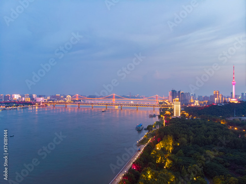 © Hao, Obraz premium Wuhan city sunset and night aerial photography scenery in summer