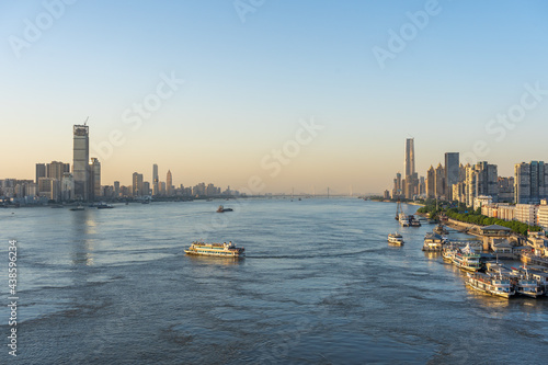 Fototapeta premium Wuhan skyline and Yangtze river with supertall skyscraper under construction...