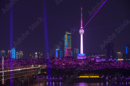 Fototapeta premium Wuhan Yangtze River and city night and light show scenery