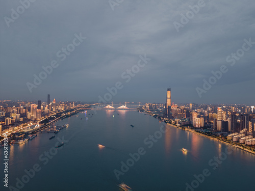 © Hao, Naklejka premium Wuhan Yangtze River and Han River on the four banks of the city landmark skyline scenery