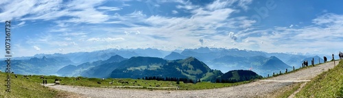 Naklejka premium Wunderschöne Panorama-Bergsicht von Rigi Kulm in der Zentral-Schweiz im...
