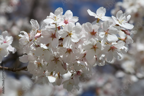 © 200509313, Obraz premium Wunderschöne weiße Kirschblüten im Sonnenlicht