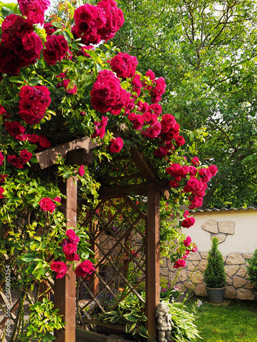 Obraz premium Wunderschöner Rosenbogen im Garten