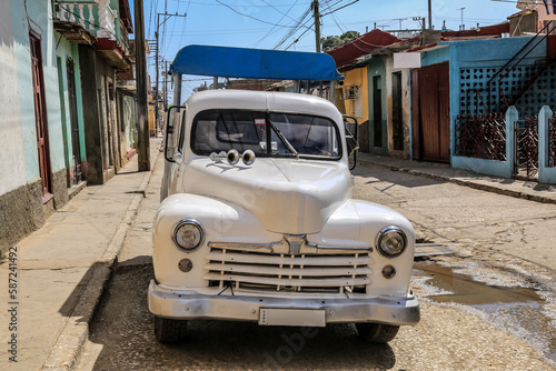 © Bittner KAUFBILD.de, Obraz premium Wunderschöner weißer Oldtimer in Kuba (Karibik)