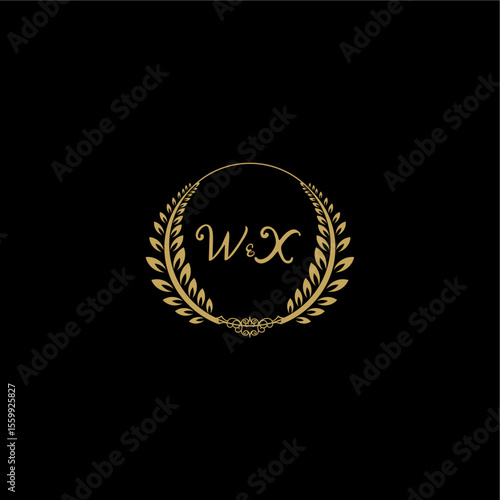 Fototapeta premium WX beautiful feminine and elegant wedding monogram initial logo with circle floral gold
