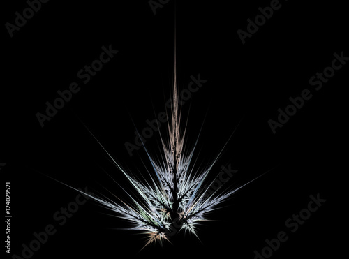 © Julia Strochilina, Fototapeta premium Wygenerowane komputerowo fraktali ilustracji jodły w dekoracji zimne kolory niebieski zima na czarnym tle
