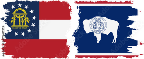Obraz premium Wyoming and Georgia states grunge brush flags connection vector