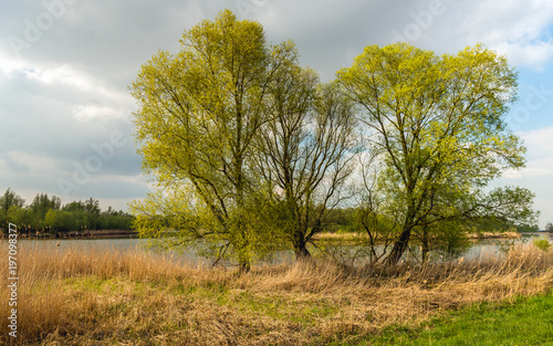 © Ruud Morijn, Fototapeta premium Wysokie drzewa na brzegu potoku na wiosnę