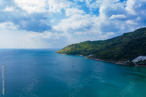 © netsay, Fototapeta premium Wyspa Phuket. Tropikalna wyspa z białą piaszczystą plażą. Piękny widok z góry. Tropikalna wyspa z piaszczystą plażą. Tajlandia lotnicze