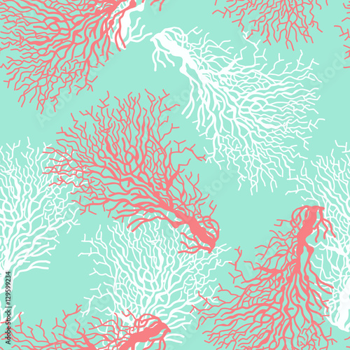 © LilaloveDesign, Naklejka premium Wzór z kolorową rafą koralową.