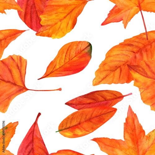 © laplateresca, Fototapeta premium Wzór z żywymi liśćmi akwarela na białym backgro