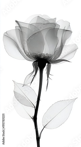 Fototapeta premium X-ray of a delicate rose revealing intricate petal structure and stem details