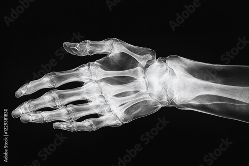 Naklejka premium X-ray of a human hand showcasing detailed bone structure and joint alignment...