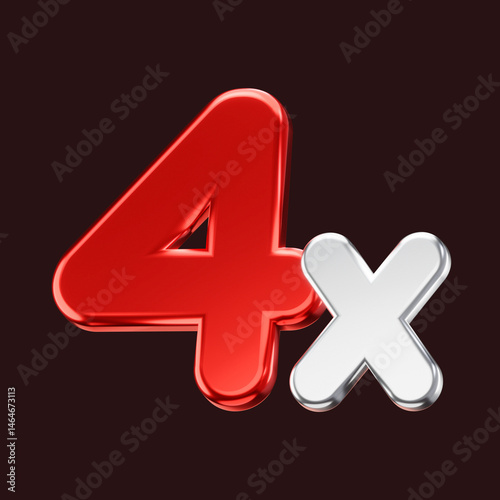 © Sabir, Fototapeta premium 4X red isolated on black background. 3D illustration.