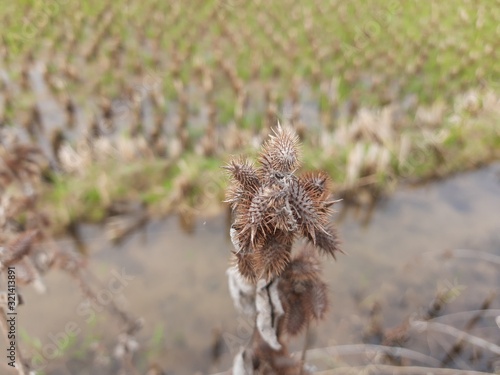 © SUBASCHANDRA, Obraz premium Xanthium strumarium (rough cocklebur,clotbur, common cocklebur, large cocklebur, woolgarie bur) is a species of annual plants of the family asteraceae.This plant has many medicinal properties.