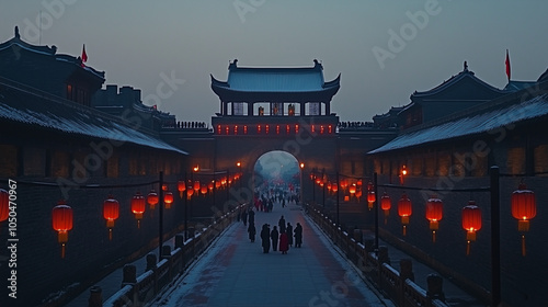 © mohammad, Fototapeta premium Xi'an Ancient Culture, the magnificent view of Xi'an Old City Gate with city walls and red lanterns hanging along the street, Ai generated images