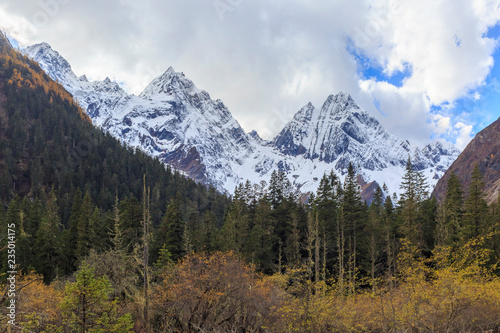 Obraz premium Xiageluo glacier at Mt Siguniang national park, China