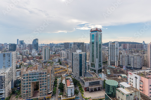 © Sen, Fototapeta premium Xiamen city center, city skyline at dusk