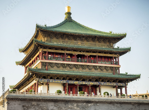 © Rosana, Fototapeta premium Xian city, Shaanxi province, China - May 25, 2018: Xian city wall tower with green roof