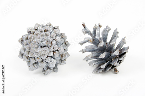 © katrin_timoff, Fototapeta premium Xmas cones painted with silver paint