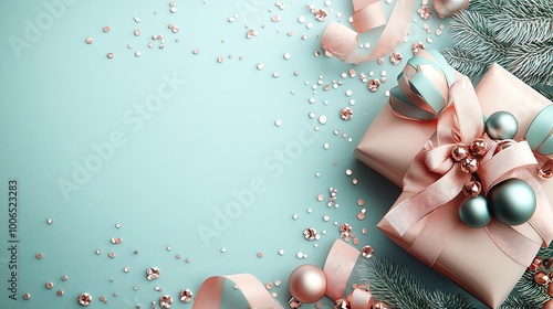 Naklejka premium Xmas new year background pastel with copy space Gift box with festive decorations
