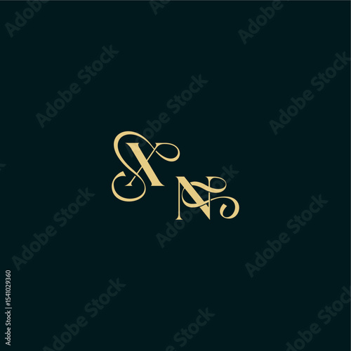 Naklejka premium XN letter elegant and curvy style monogram wedding logo initial bold concept...