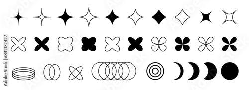 © Ann_Sereda, Fototapeta premium Y2k elements collection. Set geometric brutalism forms sticker In style graphic design y2k. Pack of black geometric shapes