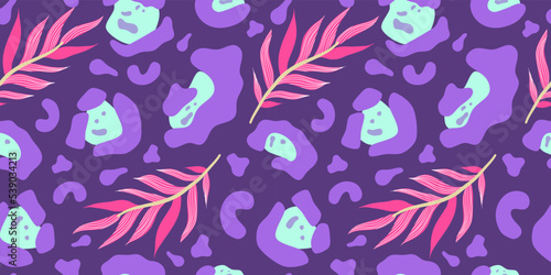 © Анжелика Полтавец, Fototapeta premium Y2k leopard seamless background. Psychedelic pink leopard print. Seamless abstract animal, skin pattern. Trendy illustration. Vector graphic illustration.