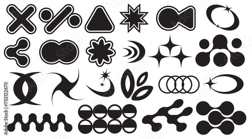 Fototapeta premium Y2K Vector Illustrations. Bold modern Shapes. Y2K symbols. Retro star icons,...