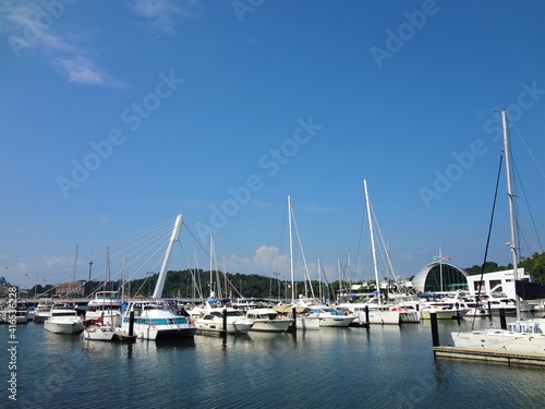 © Eric Akashi, Fototapeta premium Yacht harbor at Keppel Bay Viewpoint, Singapore - ケッペル島 ヨットハーバー