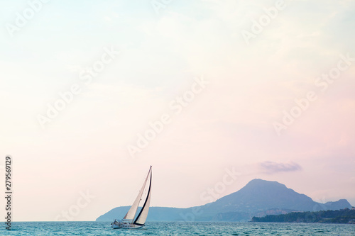 © Leilani, Obraz premium yacht in the bay in the sunny day
