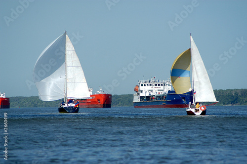 © Victor Pogontsev, Obraz premium yachts and tankers on the river don, russia