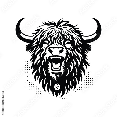 © Cici, Obraz premium Yak in bohemian black and white silhouette illustration