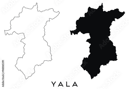 Naklejka premium Yala map outline and black silhouette vector