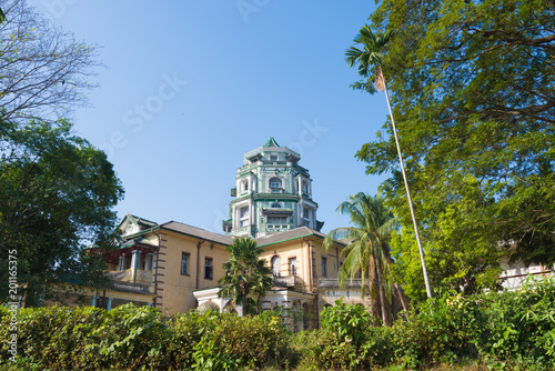 Fototapeta premium YANGON, MYANMAR - JAN 11, 2015 : Yangon old building architecture in...