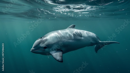 © Gomez, Fototapeta premium Yangtze finless porpoise swimming in a river, endangered species