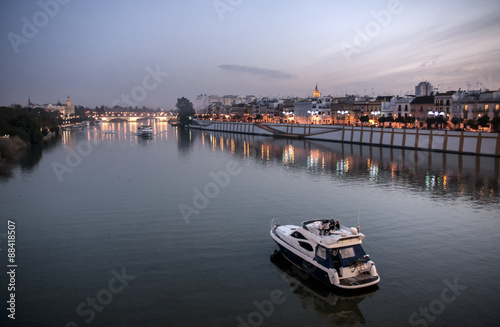 Fototapeta premium Yate en río Guadalquivir junto a Triana, Sevilla