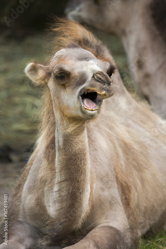 © renatepeppenster, Obraz premium Yawning baby camel
