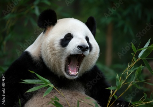Obraz premium Yawning Giant Panda in Bamboo Forest