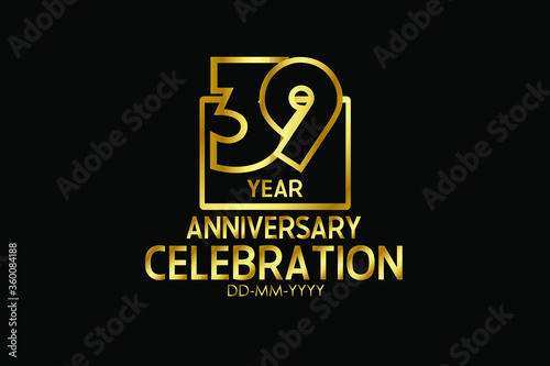 © @literallysleepy, Fototapeta premium 39 year anniversary celebration Block Design logotype. anniversary logo with golden isolated on black background - vector