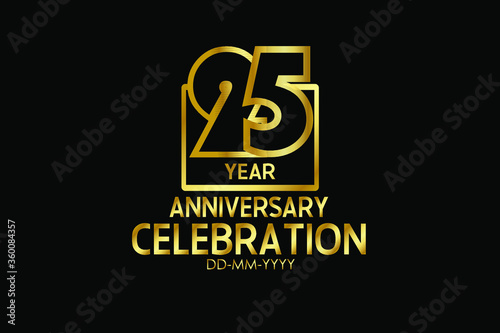 © @literallysleepy, Naklejka premium 25 year anniversary celebration Block Design logotype. anniversary logo with golden isolated on black background - vector