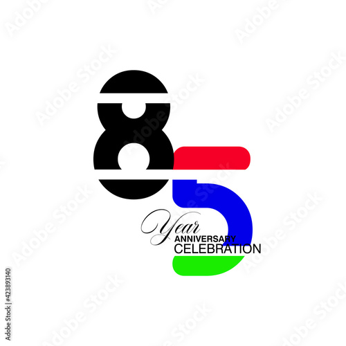 © Faizun, Naklejka premium 85 Year Anniversary Celebration Blue Color Vector Template Design Illustration